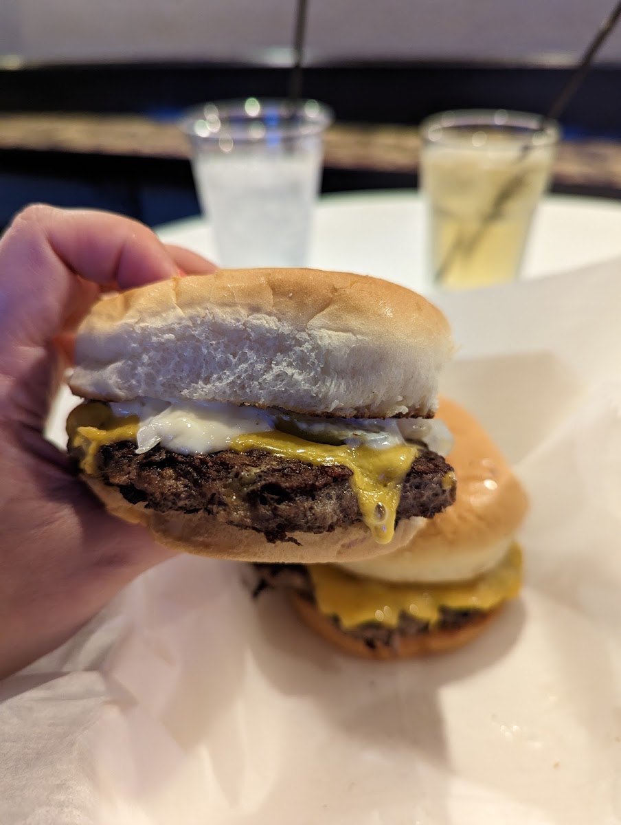 Turns out the burger special on Thursday nights is two for the price of one. You can change out the toppings. Not EXCELLENT burgers, but they hit the spot when you can't see straight. Cash only.